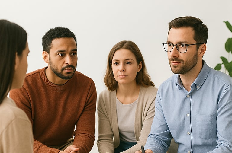 Supportive group environment for sharing experiences and healing together through guided sessions.
